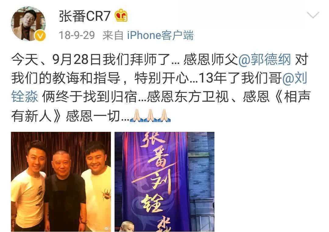 还铭刻张番刘铨淼拜师之后的发文:咱们终于找到归宿!