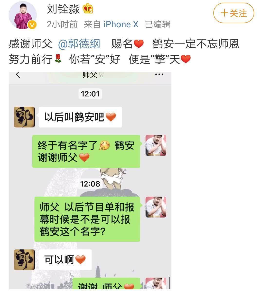 不外,从2019年7月10日这一天运行,师傅终于给哥俩取艺名了,不是呼声很高的张云番和刘九秒,而是张鹤擎和刘鹤安。得了,师傅有了,艺名有了,这哥俩从此就不错宽解在德云社说相声了!