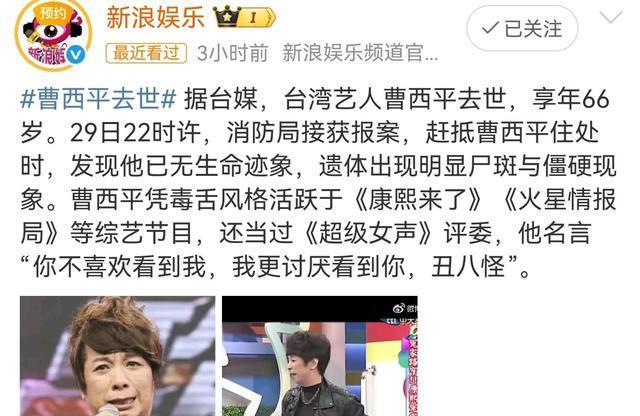 12月29日欧洲杯体育,台湾文娱圈一霎传来了一个令东谈主唏嘘的悲讯,曾在《康熙来了》为宇宙带来好多惬心的男星曹西平陡然离世,让东谈主哀悼不已。