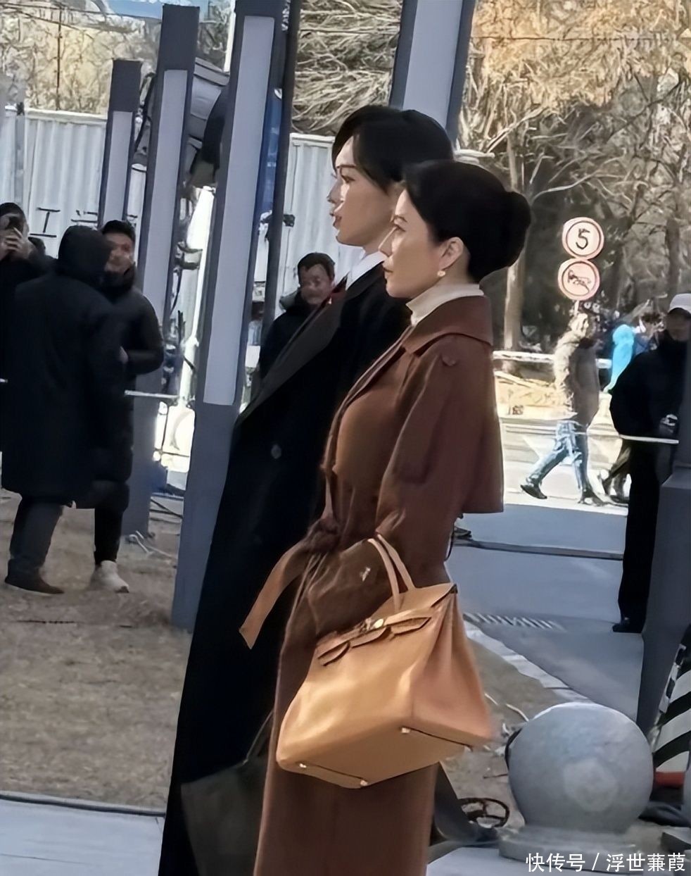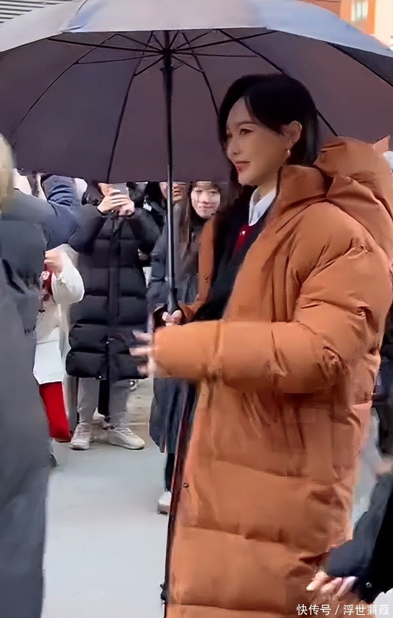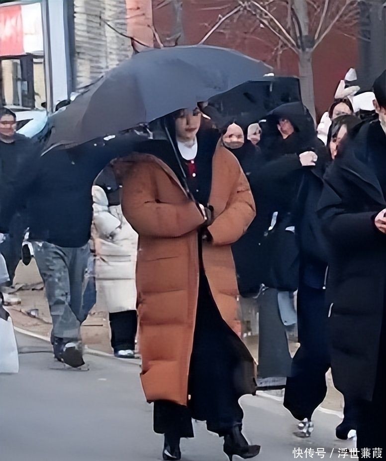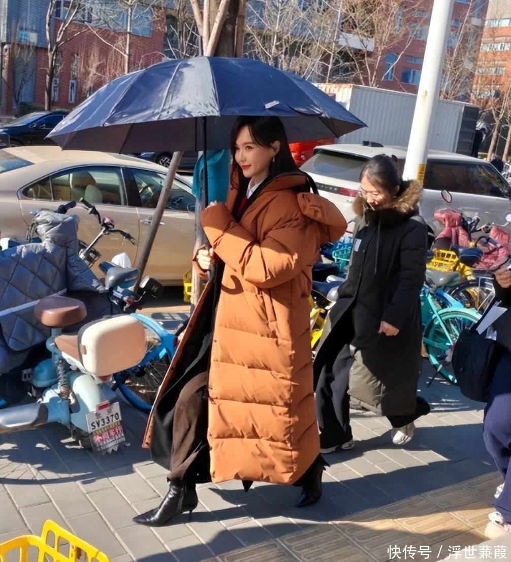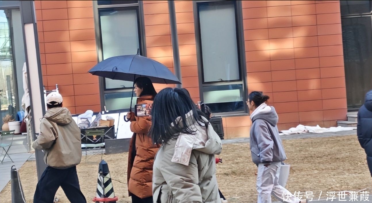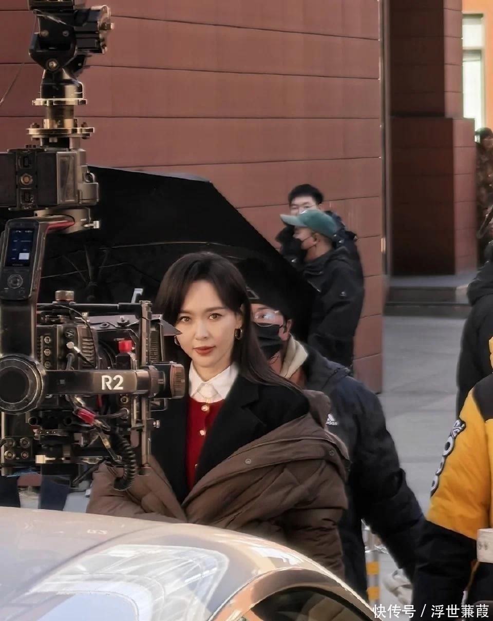 她身着质感精采的焦糖棕羊毛大衣,长发松松挽成低髻,手中紧合看成本,方法持重地穿过东说念主群抵达片场,在与导演粗陋相似后便静静立于监视器旁候场。