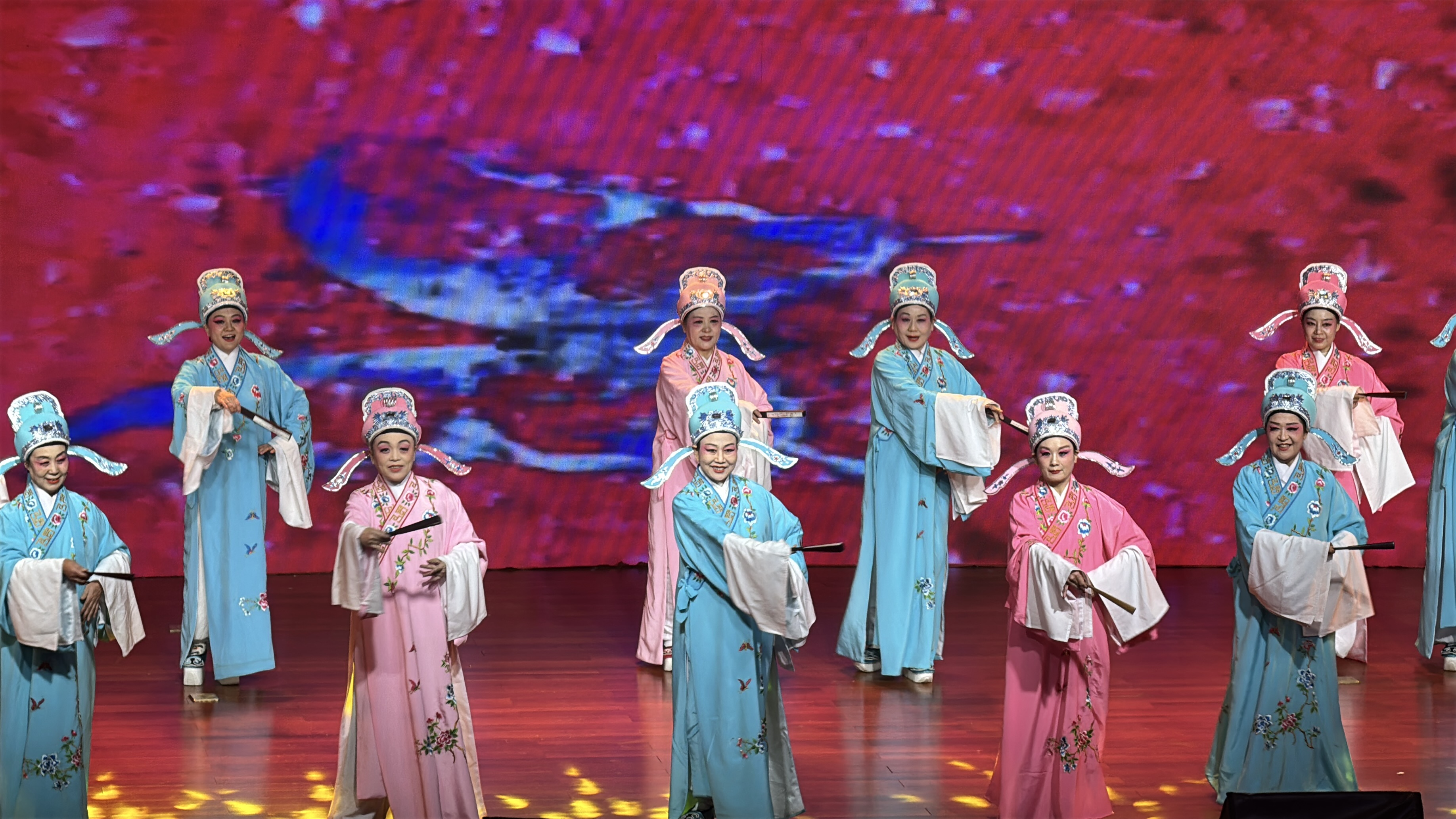 彰显家国情愫与包袱担当,火把艺术团带来的《书简舞》以走秀容貌呈现,16名演员手拿扇子身着传统衣饰,展现中华优秀传统文化的典雅之好意思;男女二重唱《咱们的中国梦》,两位演员以深情演唱诉说对中国梦的好意思好憧憬;金声竹韵艺术团带来的器乐联奏,重温红色岁月;皆鲁风味艺术团的跳舞《不忘初心》,以优好意思舞姿讲授初心职责;钰棋艺术团带来的五音戏与越剧《十八相送》,展现场合戏曲与越剧的销毁之好意思;红歌连唱串烧《道贺故国》《草原上起飞不落的太阳》《珊瑚颂》《唱支牧歌给党听》《把一切献给党》,用经典红歌串联起对故国与党的深爱;高新区轮廓王法局选送的现象剧《四季看管·咱们在》成为全场亮点,35名演员以真确场景再现王法东谈主员春夏秋冬的信守,展现高新区轮廓王法东谈主的包袱与担当,将晚会推向上涨。