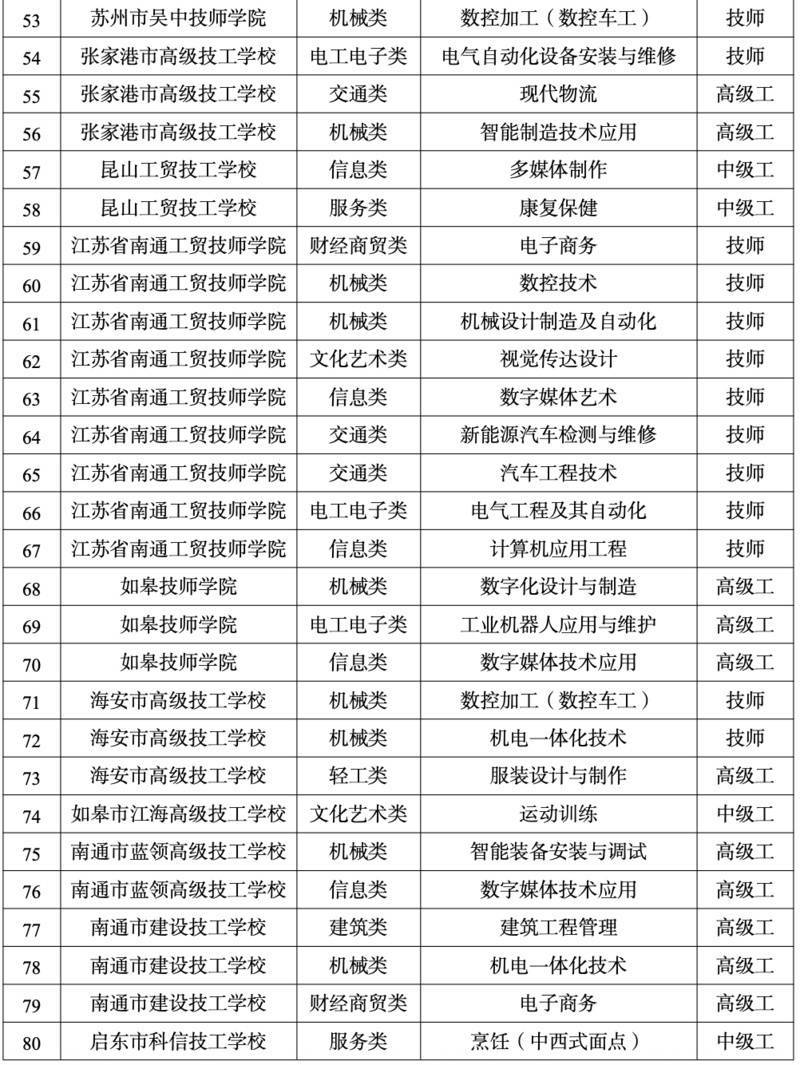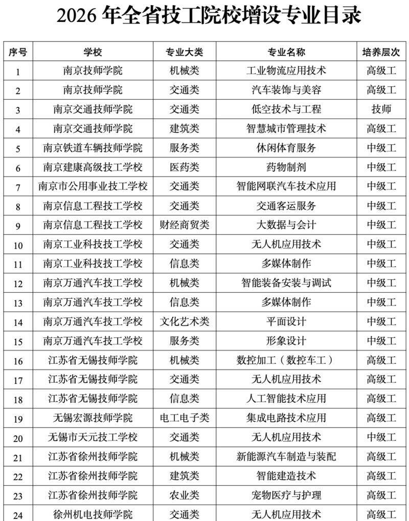 原题:江苏技工院校新增157个专科(附专科目次)