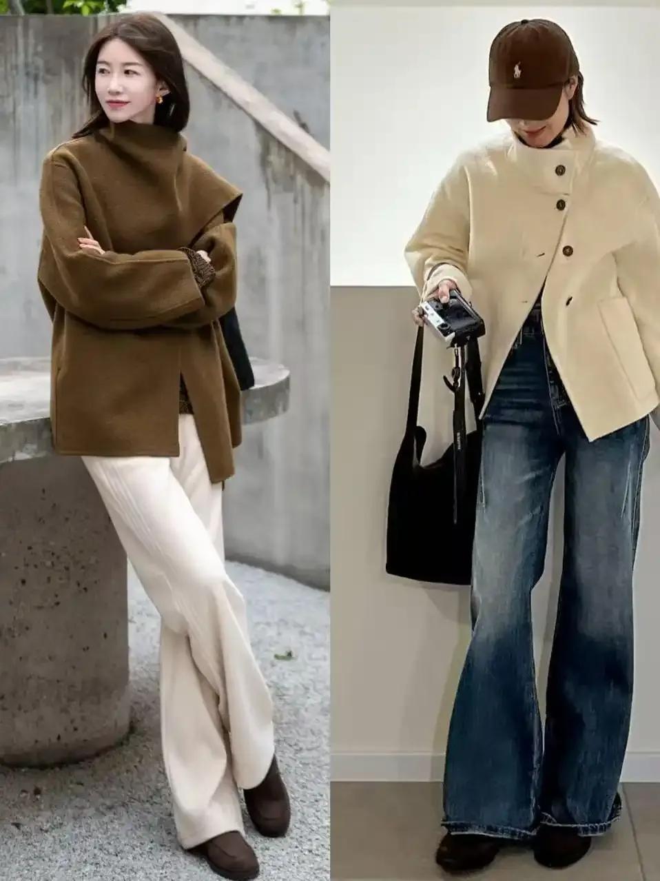 第一章节,短大衣搭配阔腿裤的上风分析Tips①:短大衣不压个子