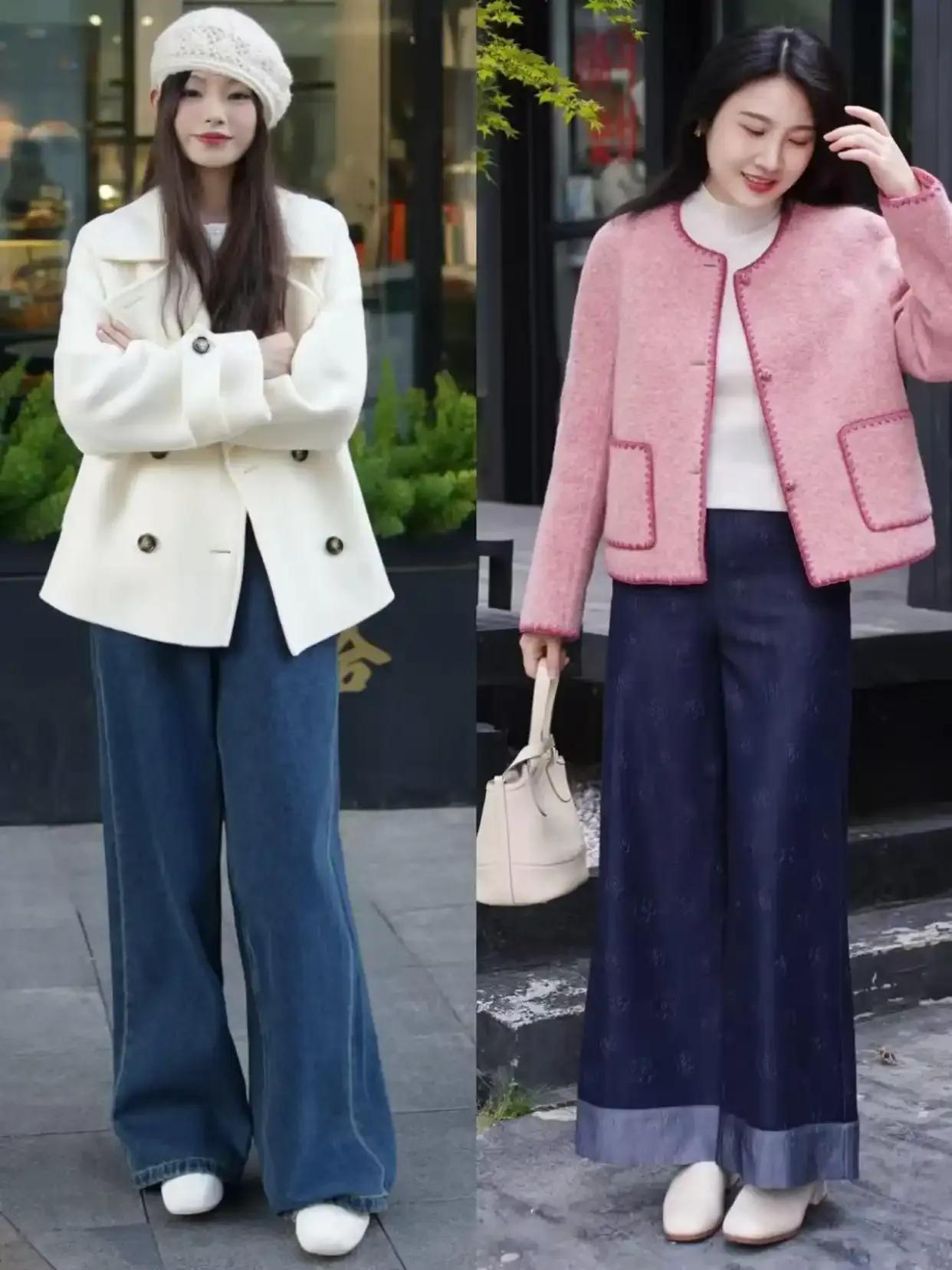 Tips③:牛仔阔腿裤 VS 玄色西装阔腿裤