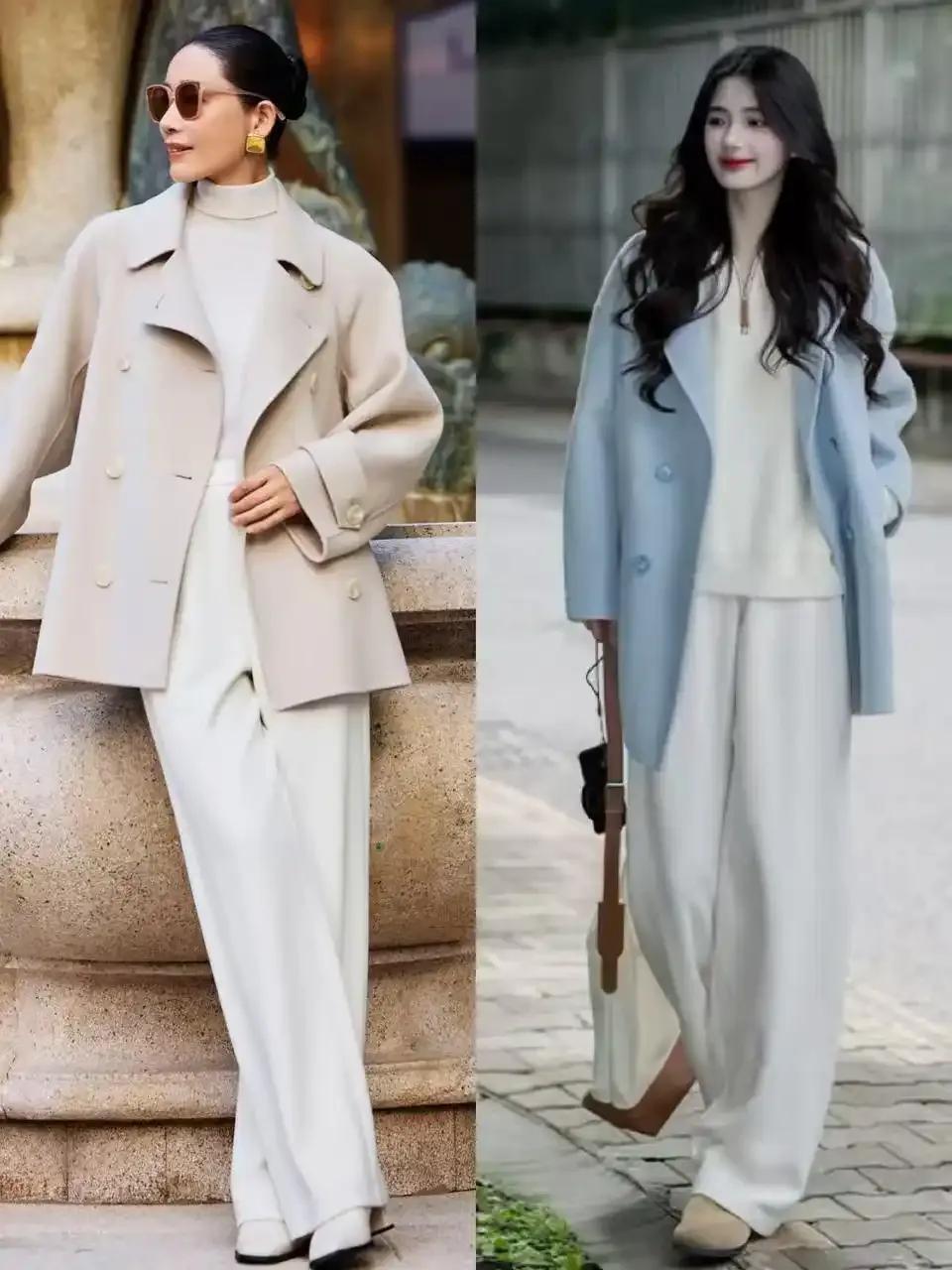 关于小个子女生来说,短大衣确实相配友好,穿在身上挺阔有型,让你看起来比拟干练,还谢绝易压个子。搭配一条白色的阔腿长裤,这就变成了上短下长的搭配使得我方显高显瘦。